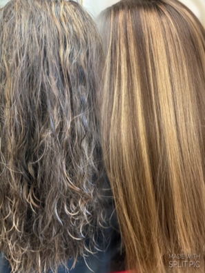Experience a soft, natural glow-up with customized dimensional color, face-framing brightness, a precision haircut, and a nourishing treatment for vibrant, healthy hair.